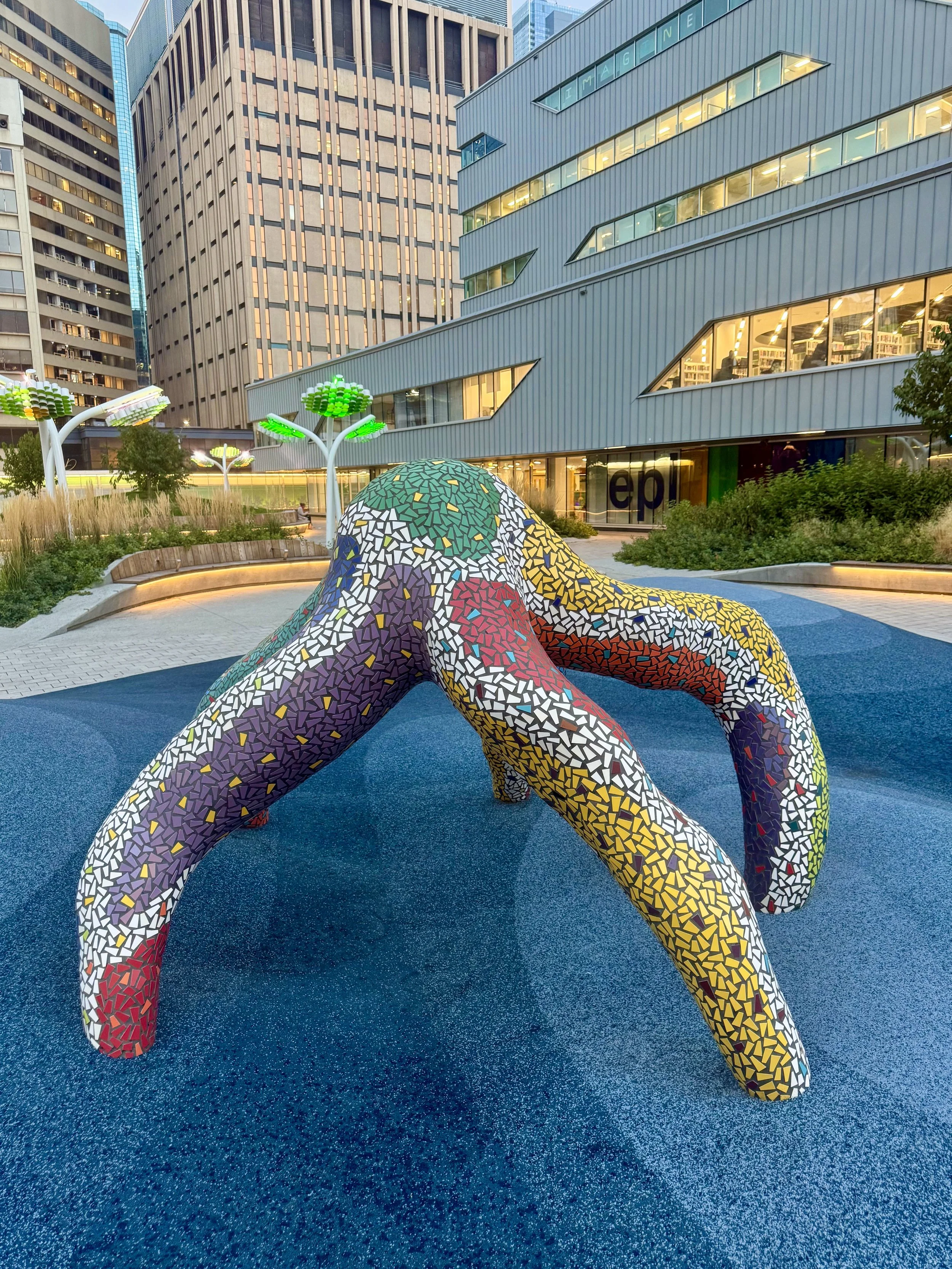 Positioned across from the children’s area of the Edmonton Public Library, UGO suggests a moment where stories continue beyond the page.